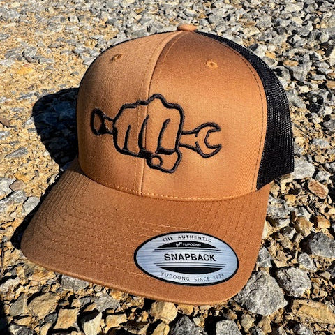 Busted Knuckle Snap back Trucker Hats are perfect for the hot summers in the shop or out on the trail. They will keep your dome cool so you don't overheat when you can't make it up an obstacle. These are a snap back enclosure so one sizes fits all. They are available in small logo or large logo and a ton of different colors. So choose wisely or buy multiple.
